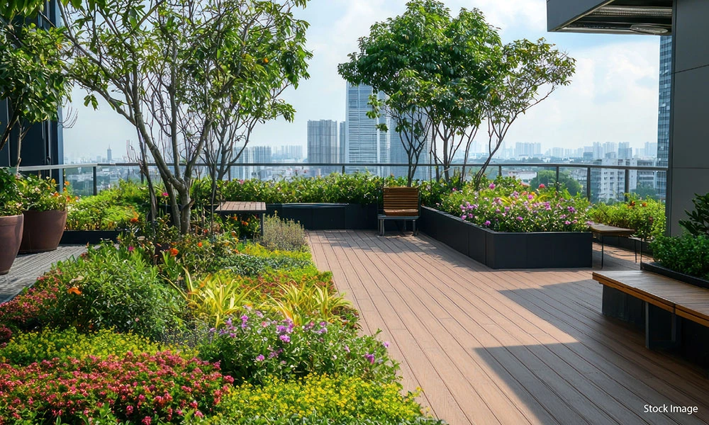 A lushful oasis, welcoming with a mix of vibrant colors and calmness.